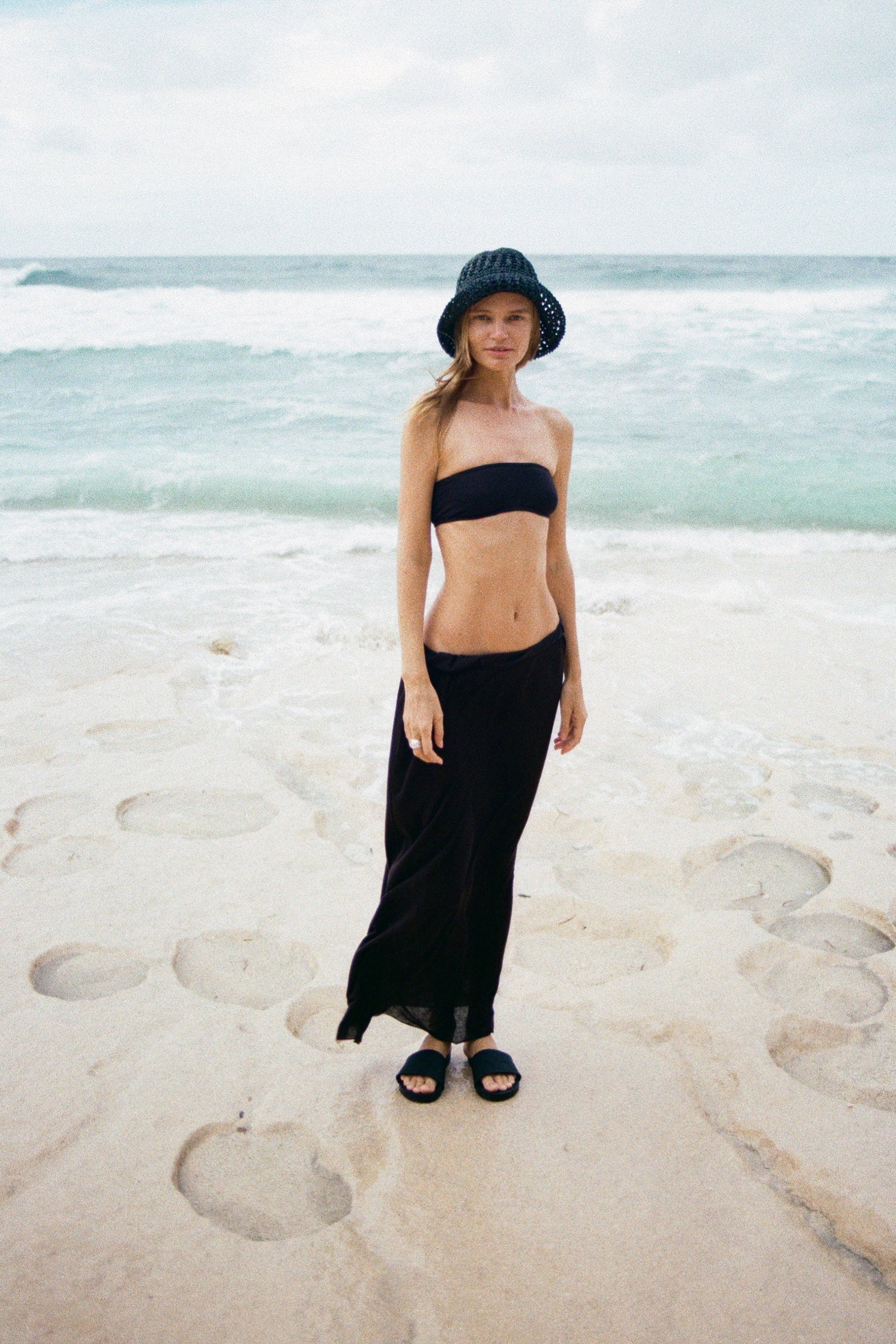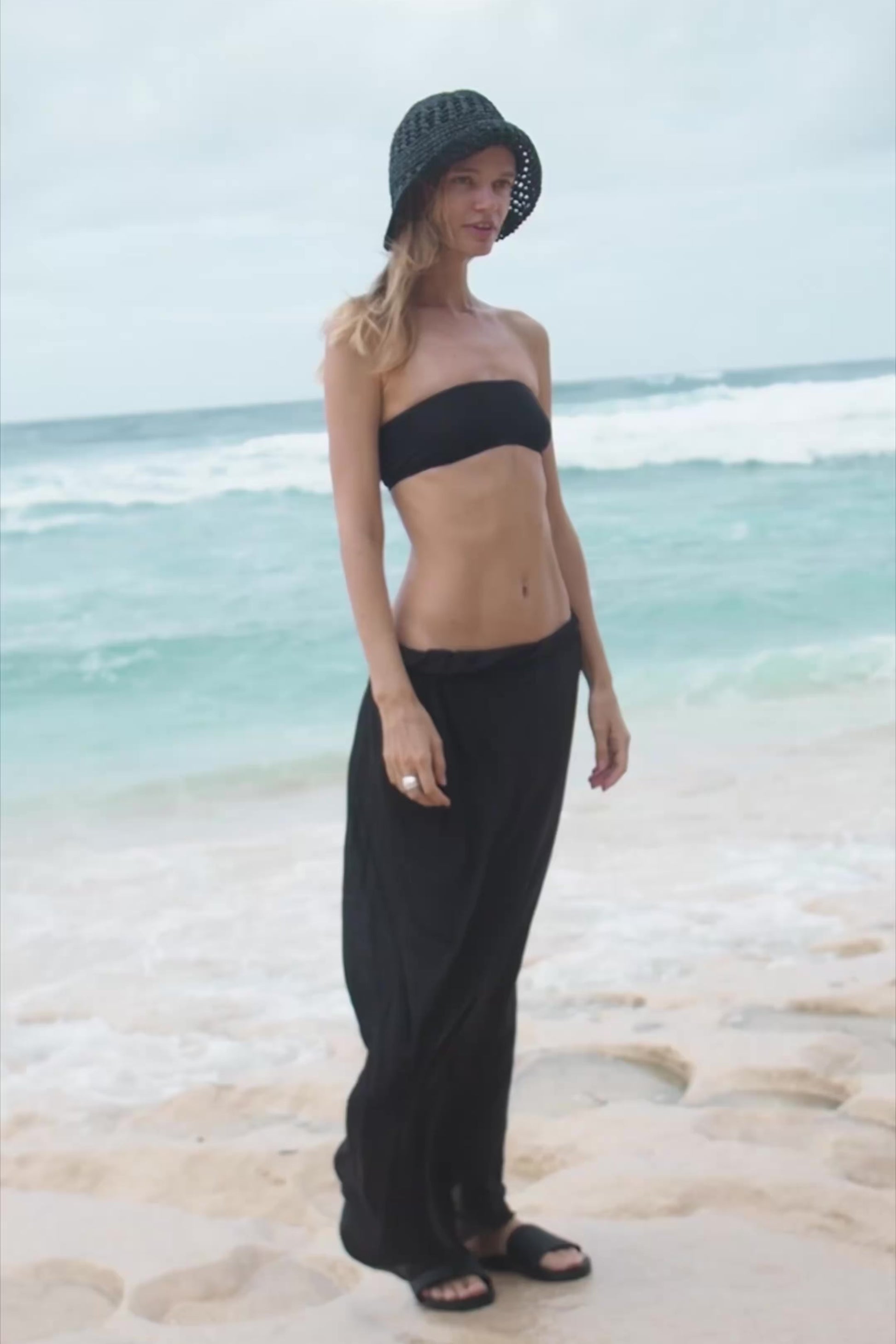 Maxi skirt with elastic waistband and raw hem. Crafted from lightweight linen knit blended with Tencel for a soft, breathable feel. The relaxed silhouette and stretchy waistband offer all-day comfort, while the raw edge adds an effortless, undone touch.