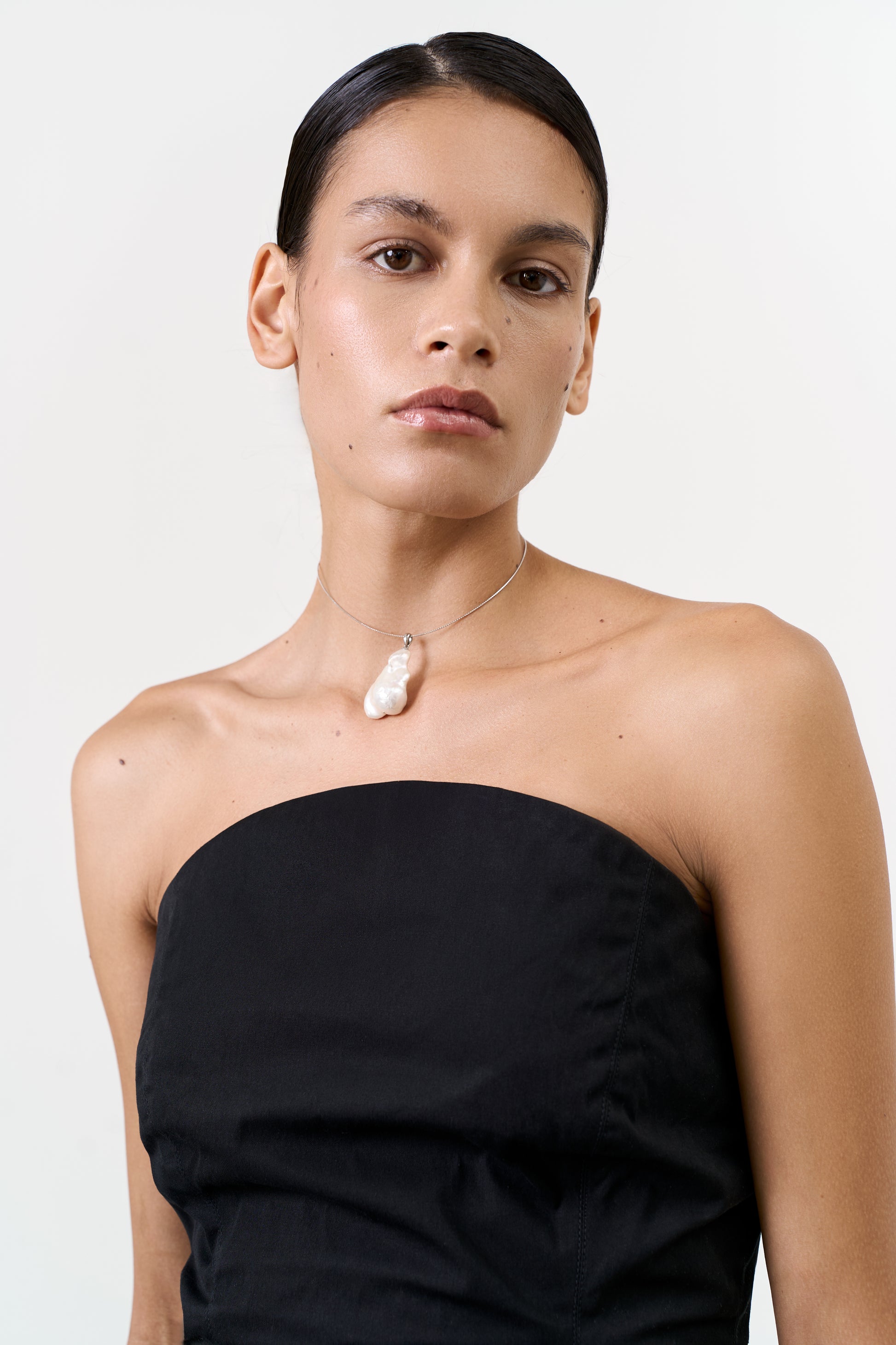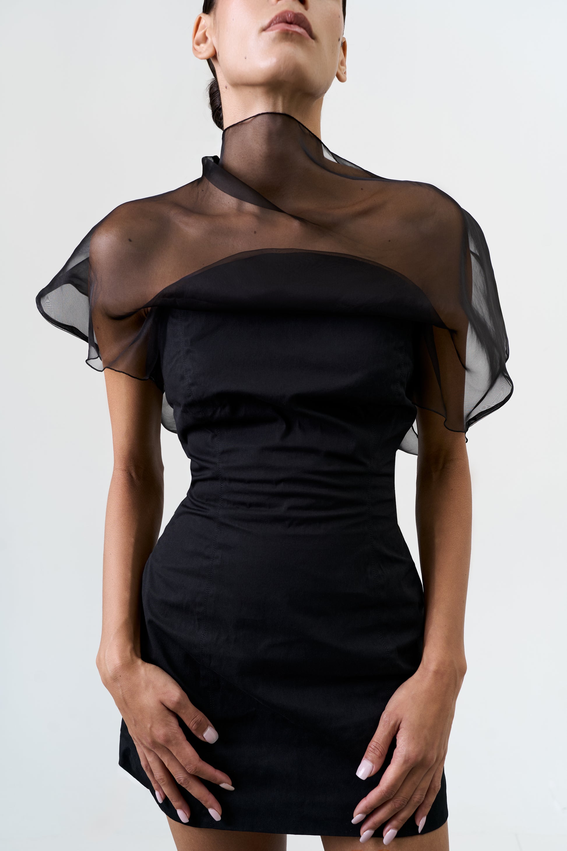 Mini dress crafted from premium structured cotton that softly sculpts the body and holds its shape. Designed to highlight the silhouette with a clean, minimal line and confident elegance. Fully lined in cupro for a smooth, breathable touch against the skin.A metal zipper at the back adds a clean, architectural finish.