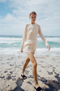 Elastic waist shorts with side pockets. Made from lightweight linen knit with added Tencel for extra softness and comfort. A relaxed fit for everyday ease.