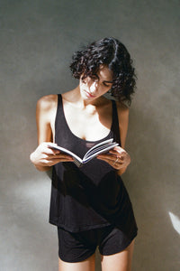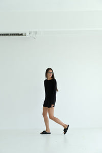 Elastic waist shorts with side pockets. Made from lightweight linen knit with added Tencel for extra softness and comfort. A relaxed fit for everyday ease.