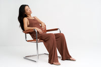 Tank top made from lightweight linen knit with Tencel. The semi-sheer fabric feels soft and light on the skin. Its relaxed fit follows the body’s shape, while the deep scoop back adds a feminine and striking touch. Perfect for warm days and easy layering.