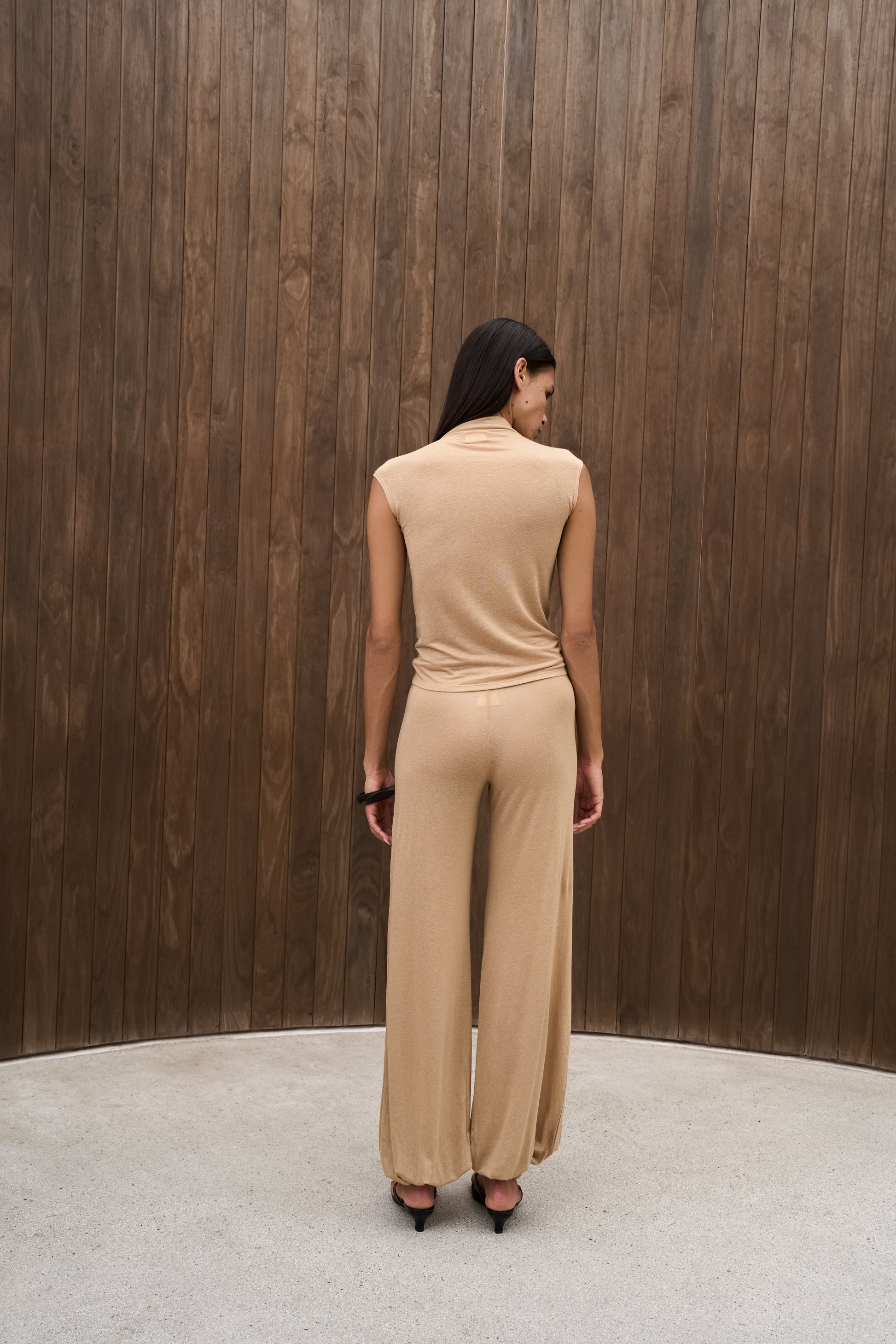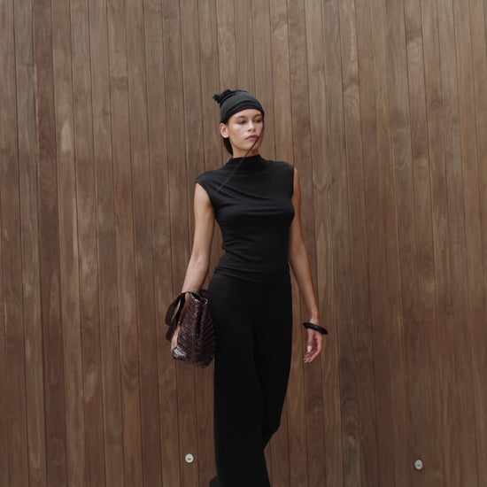 Fitted double-layer off-shoulder top in a smooth lyocell-viscose blend. Clean neckline that frames the shoulders and collarbones. Soft stretch fabric with a body-skimming silhouette.
